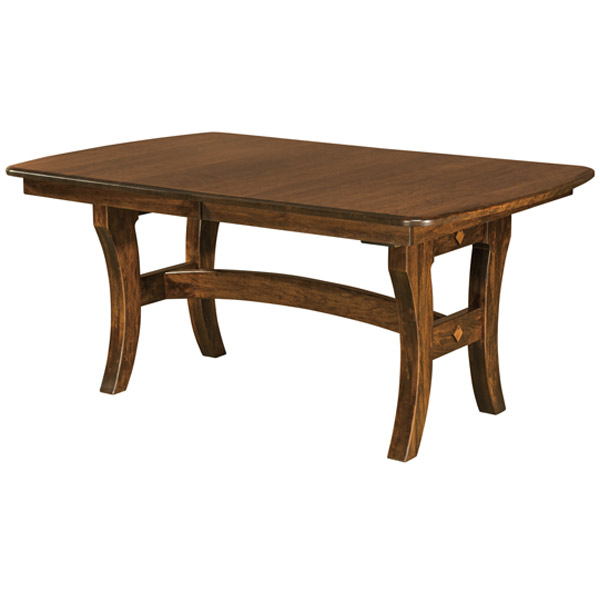 The Abilene dining trestle table features a 1″ thick top with a bow end top and waterfall edge profile. This table also comes with standard leg levelers.