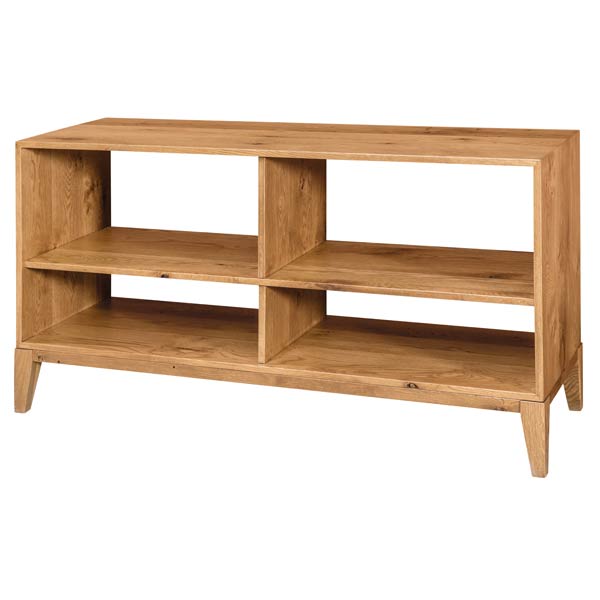 Standard Features: 3/4″ solid panel construction, mitre-corners, open design. Bottom opening width is 25 3/4″, Bottom shelf height 8″, opening above shelf 12.5″.