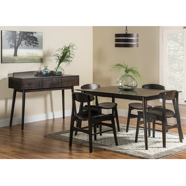 Arcadia Leg Table is a Modern Dining Table with a 1″ thick top and 2″ under bevel edge. Floor to bottom of skirt is 26 5/8″. The skirt is 2 1/2″ wide. 36″ and 42″ Wide tables will self store 1 leaf with skirt and 1 leaf without. 3 or more leaves will have a center leg. Handcrafted using American hardwoods. Choose your table size, wood type, stain color, and number of leaves. Standard top shape is square with a 2″ under bevel edge. Please call for more options and details about this table.