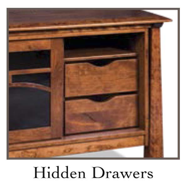 Standard Features: Solid 4 sided tapered legs, smoked glass, smooth sliding track for all doors with simple mechanism for easy removal, 2 adjustable shelves behind glass doors, 1 adjustable shelf on left side, 2 hidden drawers with shelf behind right door.