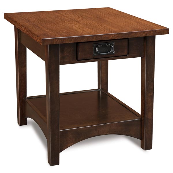 Features 1″ tops with Mission edge and inset dovetailed drawers with full extension slides.