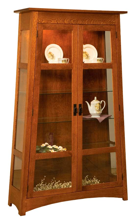 Atwood Curio features beveled glass, touch lights, and 4 glass shelves.