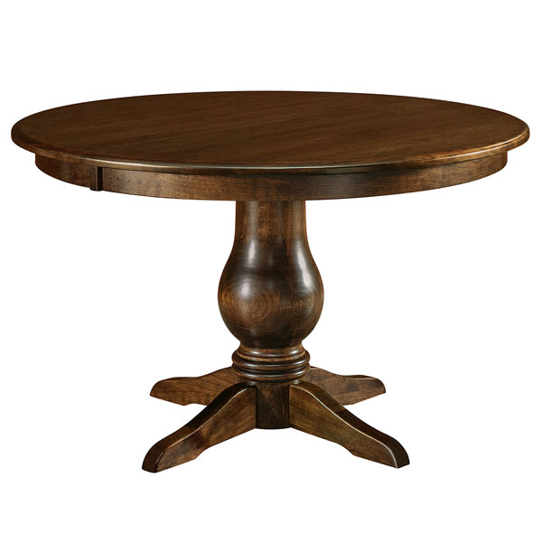 Standard sizes: 42″, 48″ or 54″ round. Add up to 2 leaves, no self store on this table.