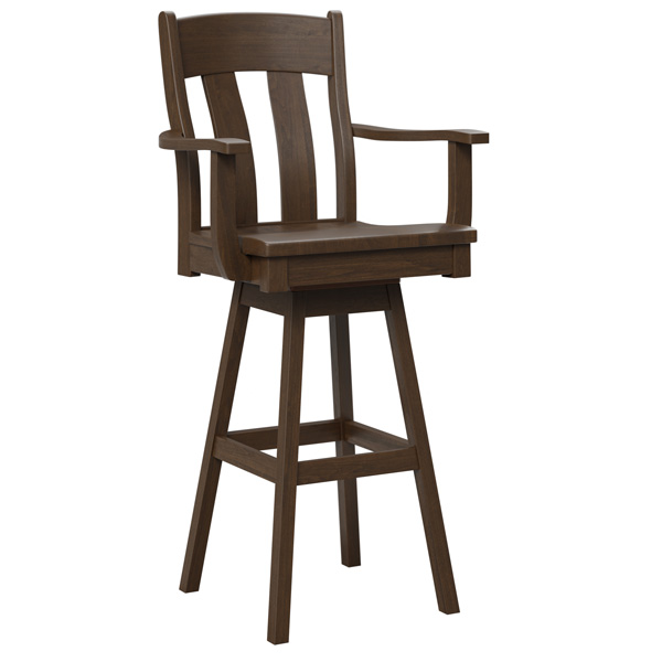 Choose your wood type, stain color, wood – fabric – or leather seat, seat height, add arms, stationary or swivel.