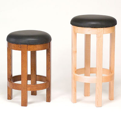 The Barrel barstool is available with wood, fabric or leather seats. Swivel seats are standard.