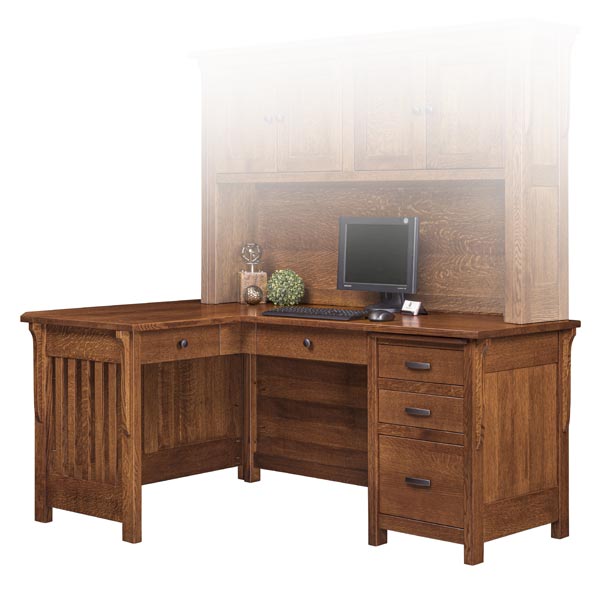 Standard Features: Return on right, desk and return pencil drawers, finished back on desk, unfinished back on return, 1 file drawer, 2 small drawers, 1 writing pullout.