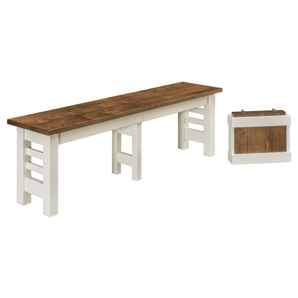 Features 1″ thick rectangle top with mission edge. Leaf Storage Box included if you choose to have the bench expand. Each bench leaf is 12″ wide.