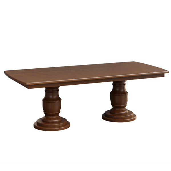 1 1/4” bow end top with waterfall edge is standard. Base standard as shown with levelers.  Choose your wood type, number of leaves, and stain color.  Leaves are 12″ wide.