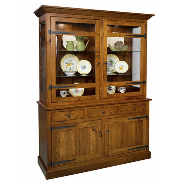 Standard Features: Flush doors with light guard, antique and bevel glass, full extension soft close undermount drawer slides, LED lighting, 2 adjustable glass shelves with plate groove in top, shiplap back, fixed shelf in base, overlay strap hinges, and European hinges.