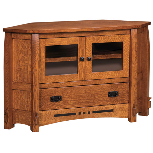 Colebrook TV Corner Cabinet is shown in Quartersawn White Oak with standard hardware.  For more hardware options please view the hardware catalog.