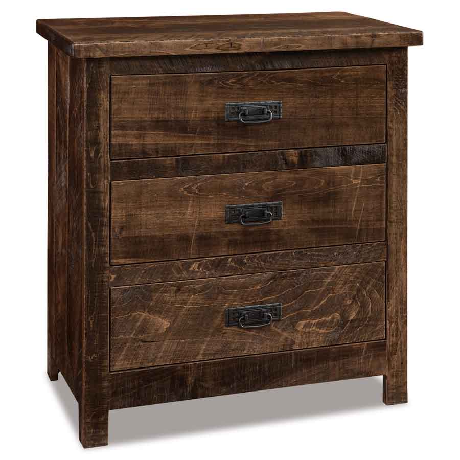 This Rustic Nightstand has 3 pull out drawers. Shown in Almond Stain.