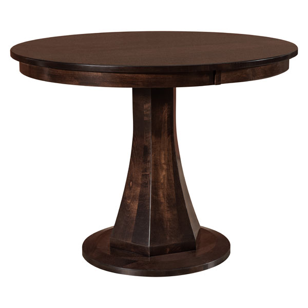 Emerson Pub Pedestal Dining Table features a round top with mission edge.