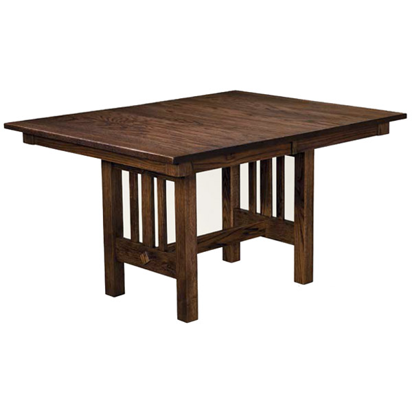 The Emily Trestle is ideal for condo style living. Shown and priced as a 42 x 54. This table can self-store up to 2 leaves with skirts. The Emily features a square corner with mission edge and has a 1″ thick top. Leaves are 12″ each.