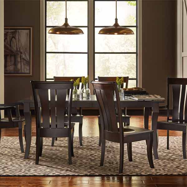 Fenmore Leg Dining Table features a square top with 1/2″ roundover edge profile.
