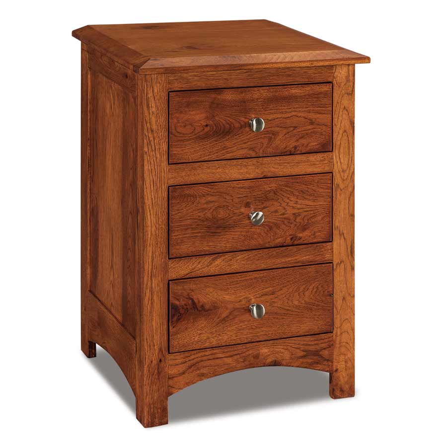 Finland 3 Drawer Nightstand is shown in Rustic Hickory with Golden Harvest Stain.