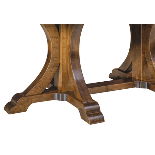 1″ bow with round top and partial thumbnail edge is standard on the Granite double pedestal dining table. Has geared equalizer slides. Leaves are 12″ wide.