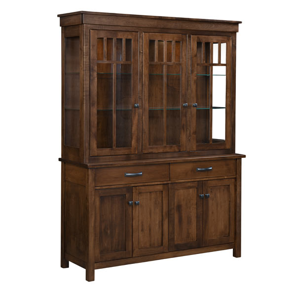 Hadley 3 door Hutch features LED lights, undermount soft close drawer slides, soft close hinges, light blocking trim in doors, and standard hardware.