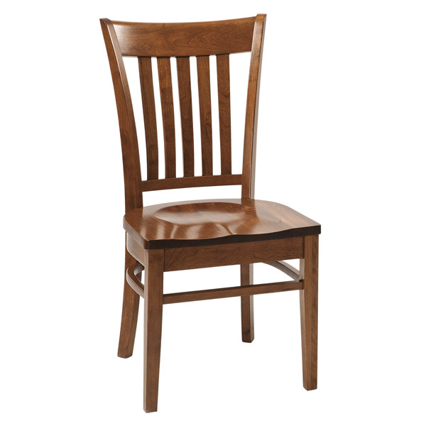 The Harper Dining Chair pairs well with several of our dining tables. Features a scooped-out seat for added comfort. Shown in Cherry with Malaguania Stain.