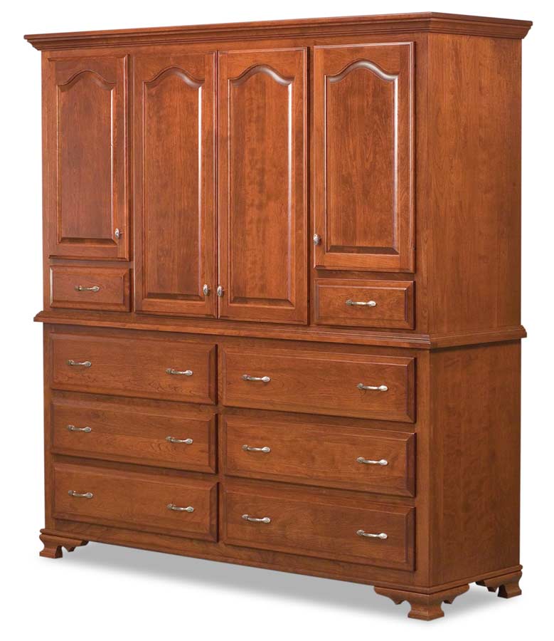Heritage Collection features 3/4″ solid wood tops and side panels, full extension drawer slides, thumbnail edge on tops, cathedral raised panel doors and drawer fronts, unique heritage style feet, concealed knife hinges, solid maple dovetailed drawer boxes, soft close door hinges on all doors, and standard hardware.