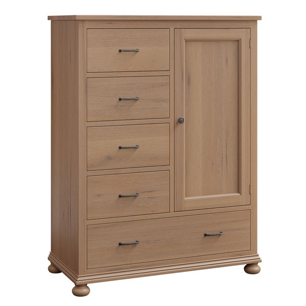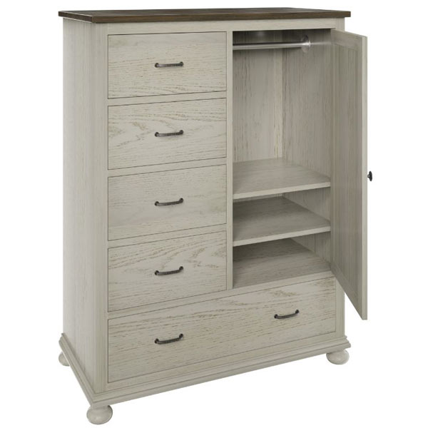 Hickory Grove Gentlemen’s Chest TR42071 features 5 drawers and 1 door. The Hickory Grove Gentlemans Chest comes standard with adjustable shelves and clothes rod behind the door.