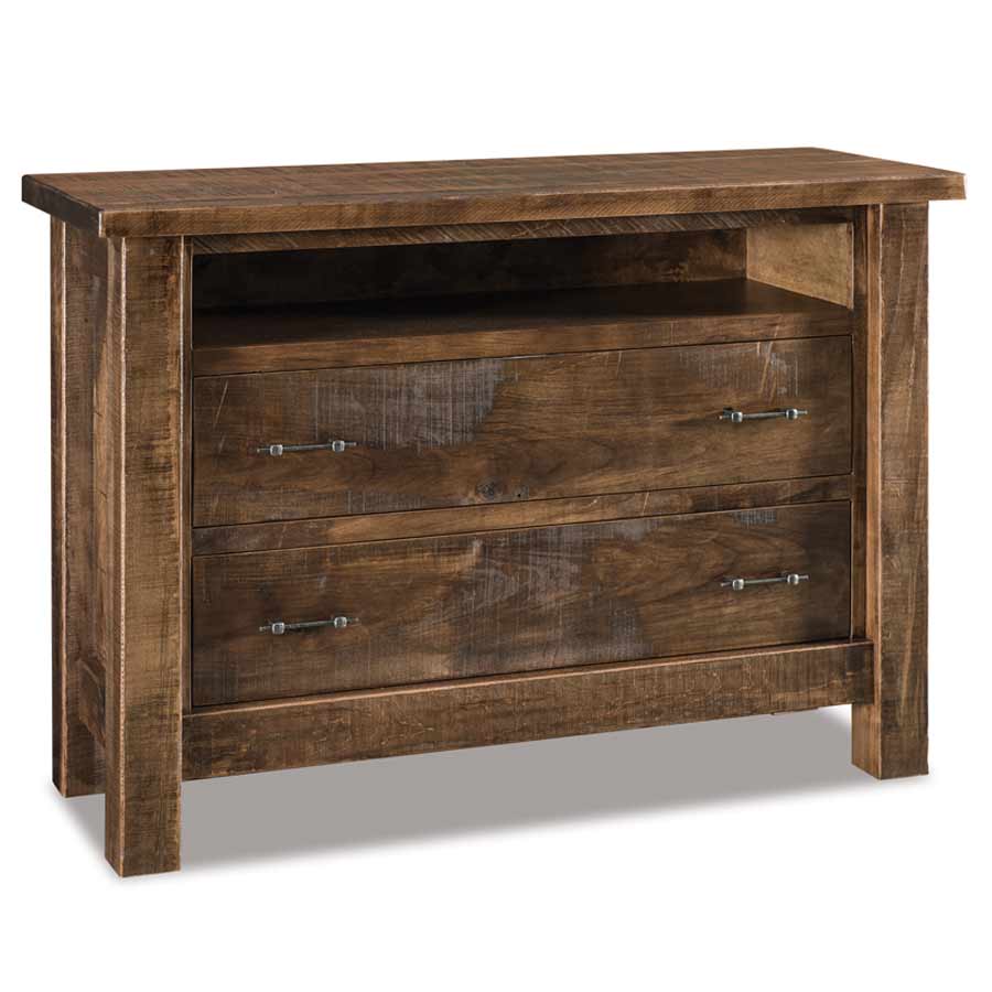 2 Drawer Media Chest. Rustic styled collection works well in several homes. Built to heirloom quality. These pieces are made to be passed down for generations. The Rough Sawn adds texture and character to each piece of furniture.
