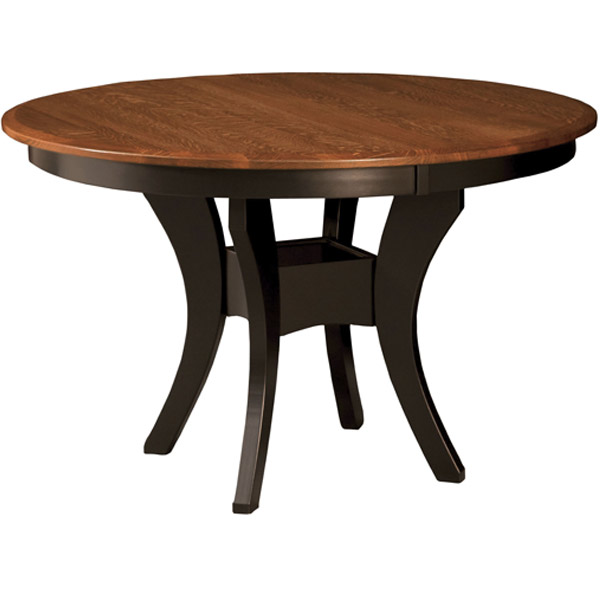 The Imperial Single Pedestal Table features a 1″ thick round top with bevel edge, leg levelers, and can have up to 2 leaves.