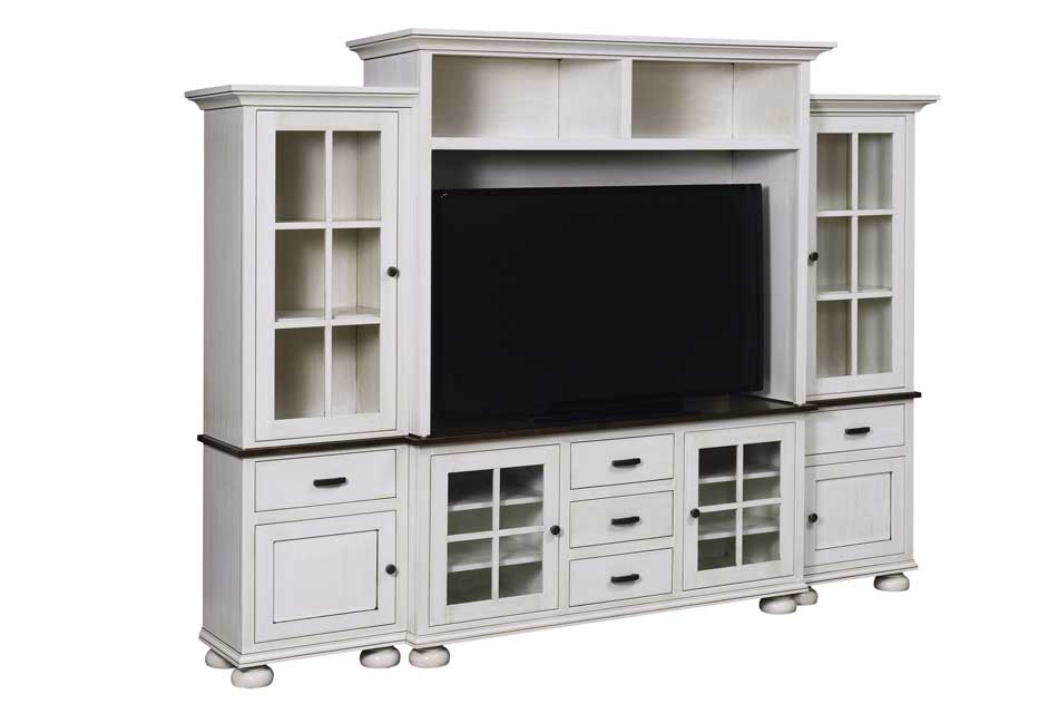 Standard Features: Adjustable wood shelves 2 behind each glass door, soft close doors, and full extension drawers.