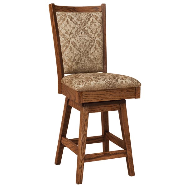 Handcrafted by the Amish, please allow up to 12 weeks for delivery. Priced as a 24″ stationary bar stool with fabric seat.
