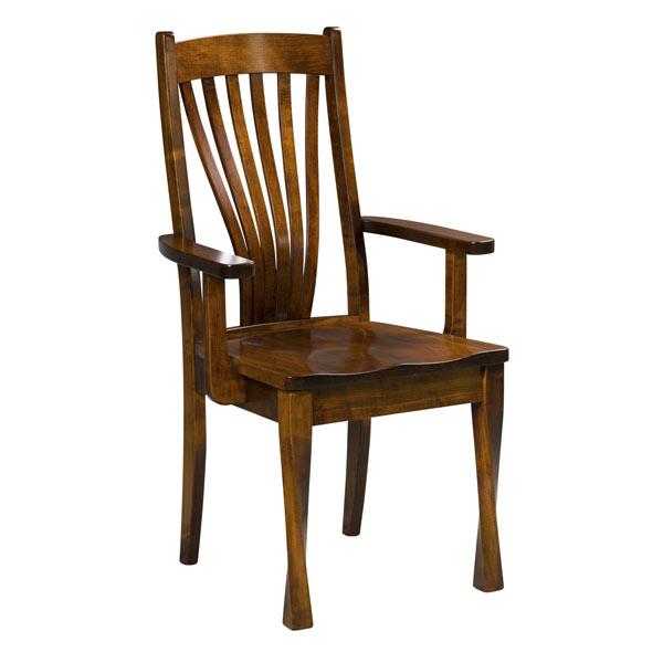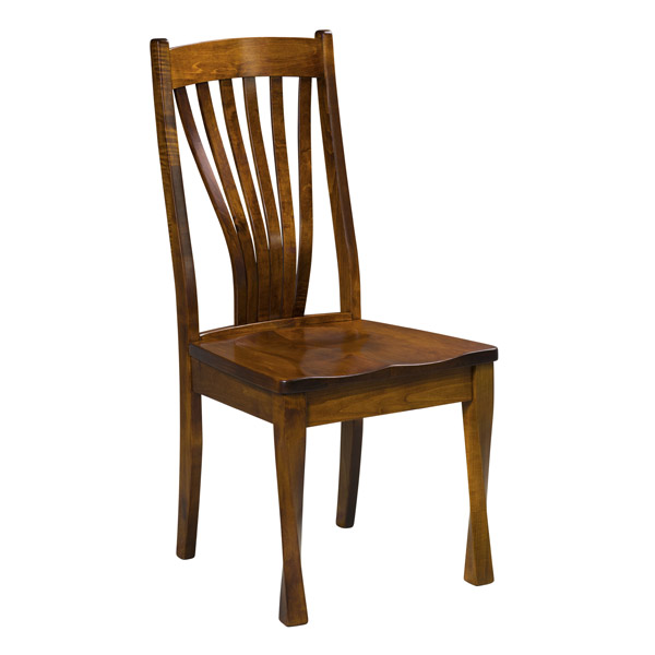 The Lexington Dining Chair features standard Saddle Scoop seat with twisted front legs. Shown in Brown Maple with Nutmeg stain.