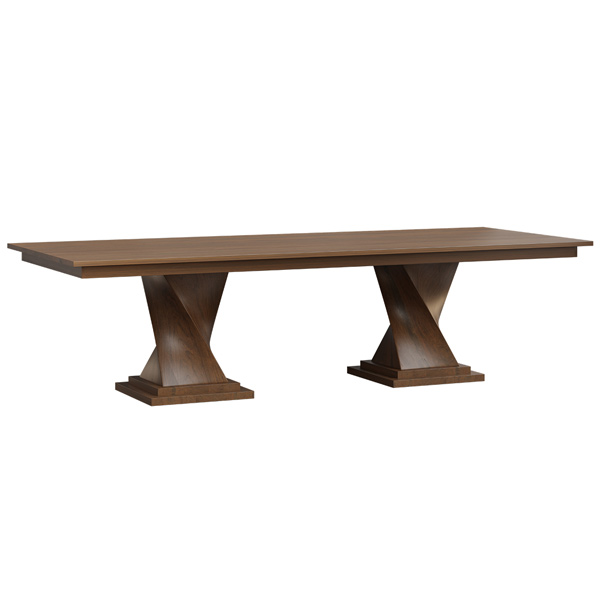 1” rectangle top with mission edge is standard. Base standard as shown with levelers.  Choose your wood type, number of leaves, and stain color.  Leaves are 12″ wide.