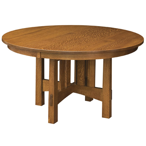 Round Modesto Dining Table is shown in Quartersawn White Oak with Michael’s Cherry stain.