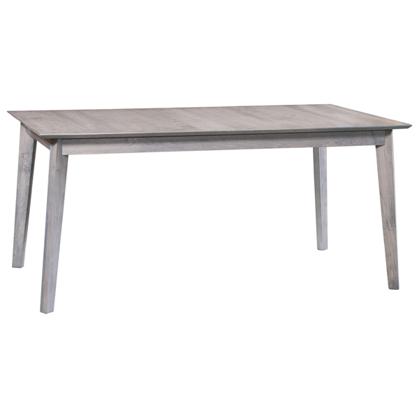 Monterey Leg Table has a 1″ top with bottom chamfer edge. 3 leaves+ will have center leg for extra stability.  26 5/8″ from floor to bottom of 2 1/2″ skirt. Shown in Brown Maple with Driftwood stain.  Select your wood type, stain color, and number of leaves.  Choose to add magnet skirts to leaves that don’t have skirts for a finished look. Priced as a 36″x 54″ solid top in Oak.
