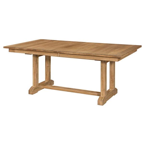 Morristown Trestle Dining Table is shown in Brown Maple with Harvest stain.