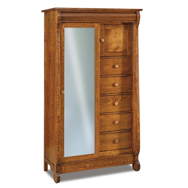 Old Classic Sleigh Sliding Door Chifferobe is shown in Quartersawn White Oak.
