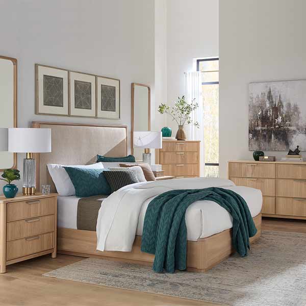 Reseda King Nightstand is shown in Plain Sawn White Oak with a custom stain.  To order in this stain or wood type please call.  Standard features: solid side panels, radius front corners, reeded drawer fronts, adjustable leveling glides,  soft close undermount drawer slides, standard hardware.  For more hardware options please view the hardware catalog and place your selection in the notes section