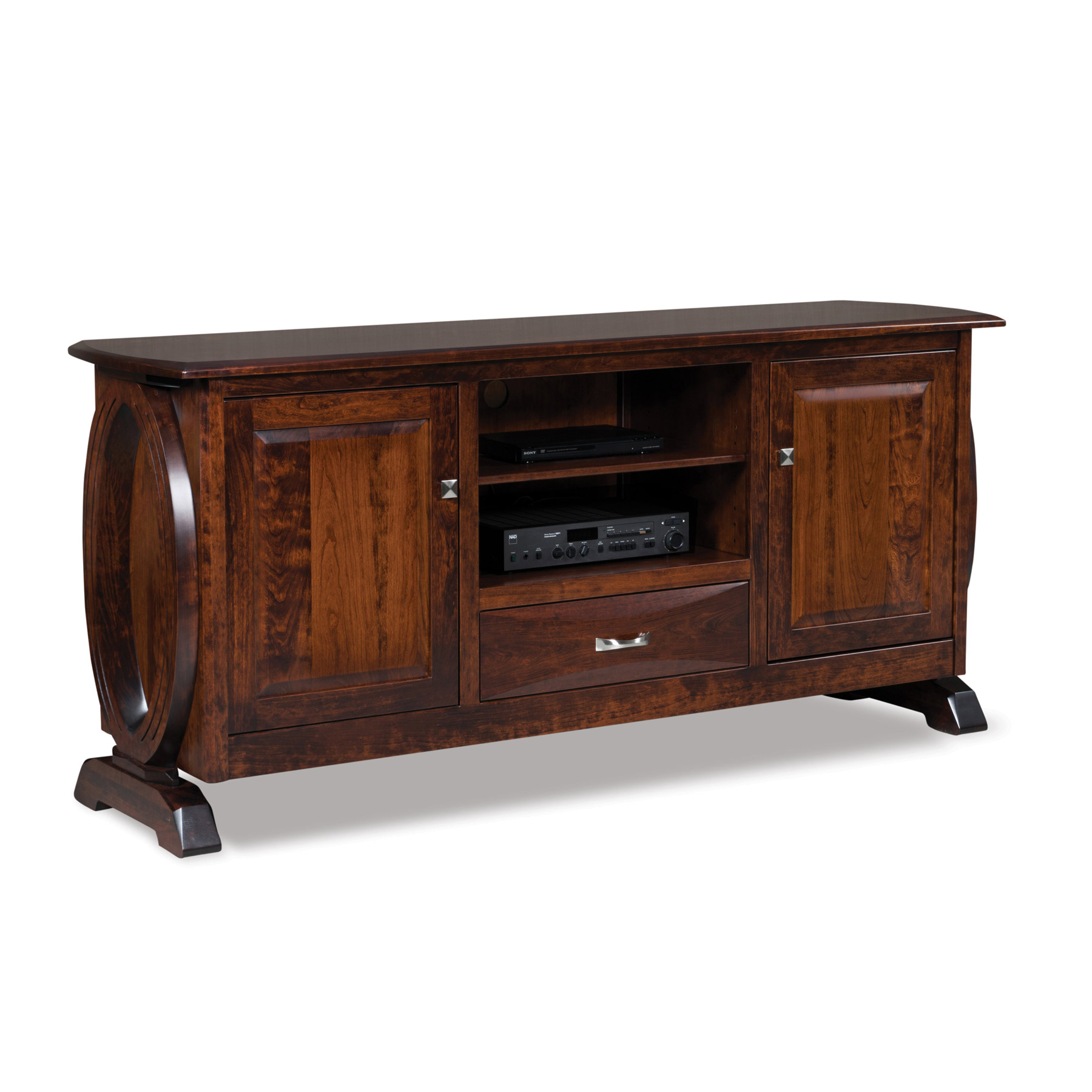 Saratoga TV Stand is shown in Cherry with Burnt Umber stain.
