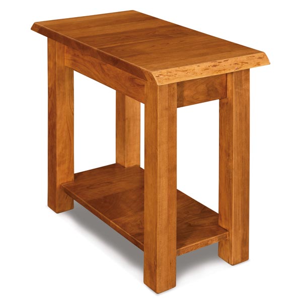 Timbra Side End Table With Live Edge Top is shown in Cherry with Chestnut stain.