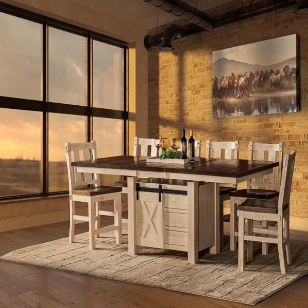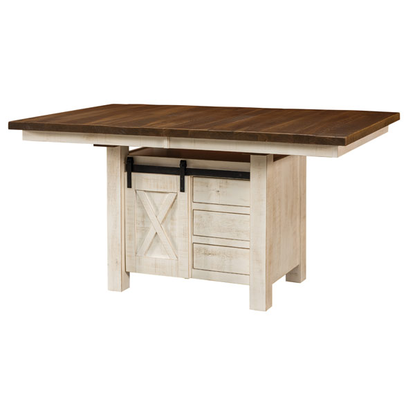 Tulsa Cabinet Table has a 1 3/4″ thick top with a mission edge. Standard undermount soft close drawer slides. 36″ H or 42″ H.