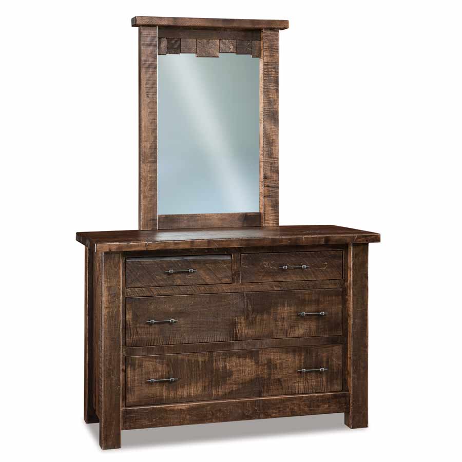 4 Drawer Dresser Rustic styled collection works well in several homes. Built to heirloom quality. These pieces are made to be passed down for generations. The Rough Sawn adds texture and character to each piece of furniture.
