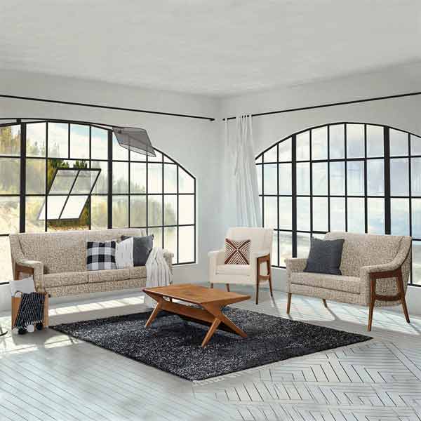 AN103 sofa shown in Quartersawn White Oak with Michaels Cherry stain and C16-23 Stone Fabric.
