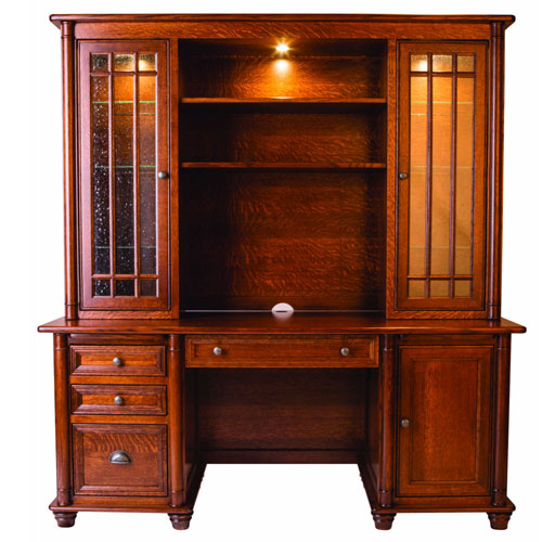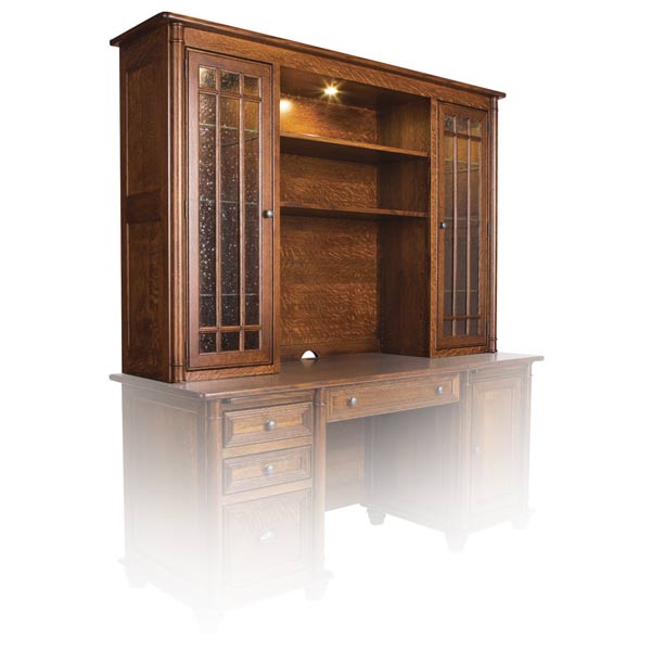 Standard Features: Mullioned doors with seedy glass, puck lights, unfinished back, adjustable shelves.