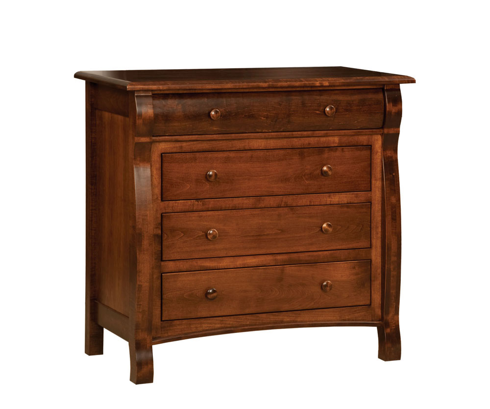 An excellent addition to your nursery. This solid wood dresser has four pull out drawers. Add the Castlebury Box Top to create the perfect changing area for your child. Standard hardware shown.