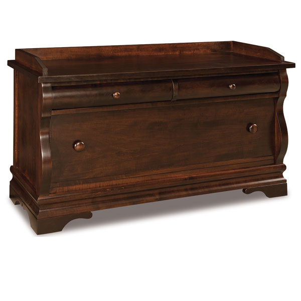 Chippewa Sleigh collection features 1″ solid wood tops and side panels, full extension drawer slides, all doors and drawers are flush, rounded top drawer fronts, solid maple dovetailed drawer boxes, soft close door hinges on all doors, and standard hardware.