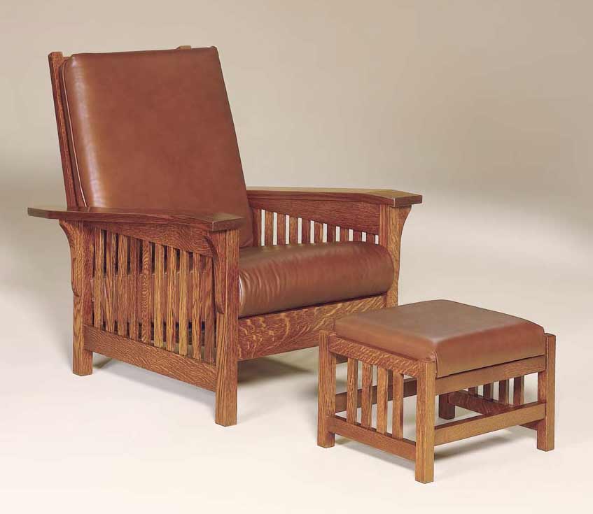 Clearspring Slat ottoman 350 CSMF is shown with the Clearspring Morris Chair 301 CSMC.