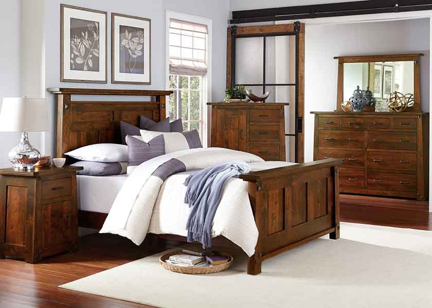 The Encada Suite is shown in Rustic Cherry / Burnt Umber Low Sheen with standard hardware.  Select your wood type, stain color, and hardware.  Please view individual pieces for sizing and prices.