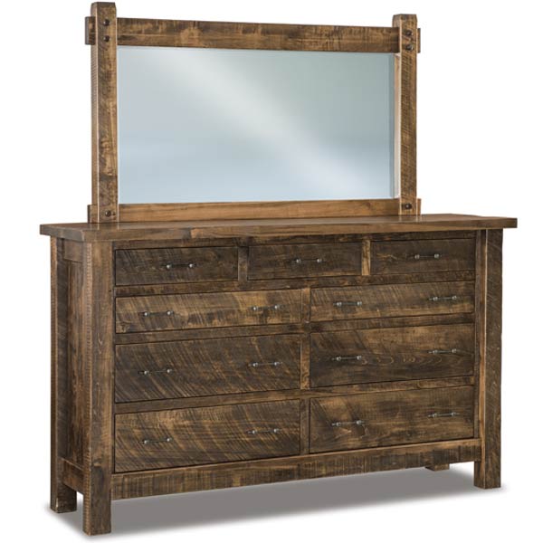 9 Drawer Dresser. Rustic styled collection works well in several homes. Built to heirloom quality. These pieces are made to be passed down for generations. The Rough Sawn adds texture and character to each piece of furniture.