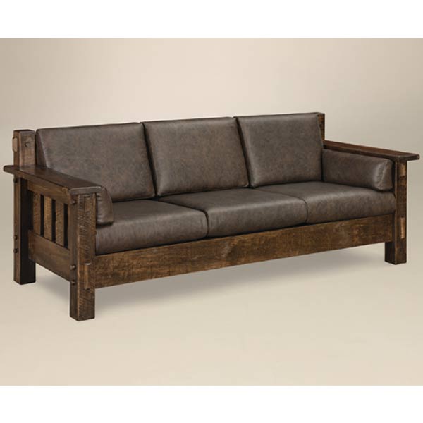 RS03 HS sofa shown in Rough Sawn Brown Maple with Texas Leather. Spring bottom is standard.