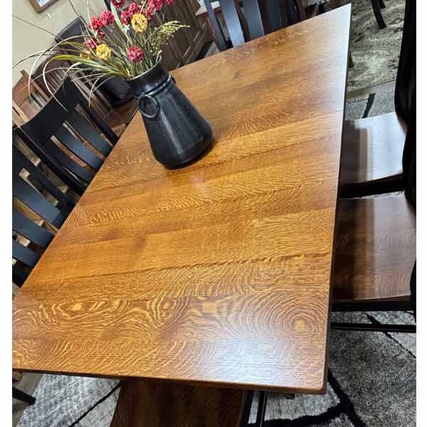 Mueller Trestle Table – 42 x 72 – 2 Leaf with self store – QSWO Top #19 Base Painted black with rub through – $3250.00