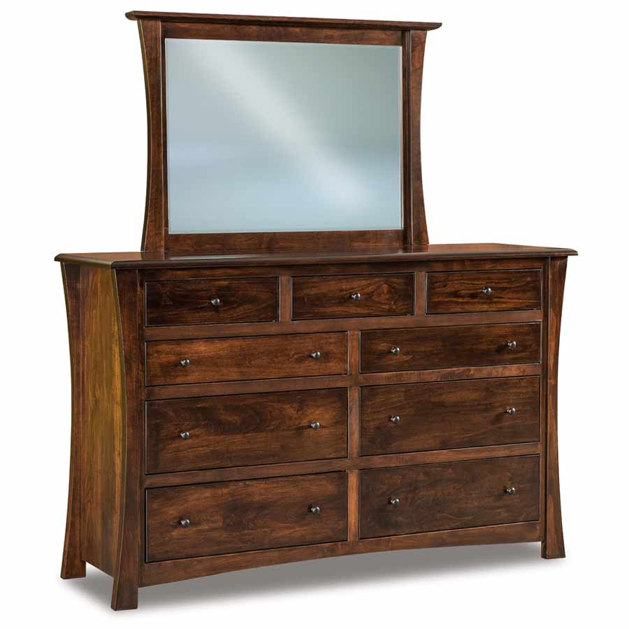 9 Drawer Mule Dresser. The Matison Collection features 1” solid tops, solid wood side panels, soft close door hinges on all doors, full extension drawer slides, beveled mirrors, and standard hardware is as shown.