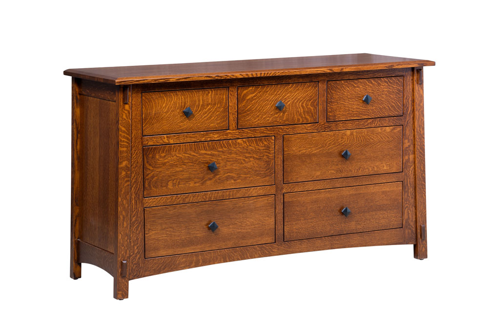 Elegant dresser with 7 pull out drawers. Add the McCoy box top for a safe and convenient place to change your baby. Add the McCoy Mirror. Standard hardware is shown. Provides storage space for your nursery.